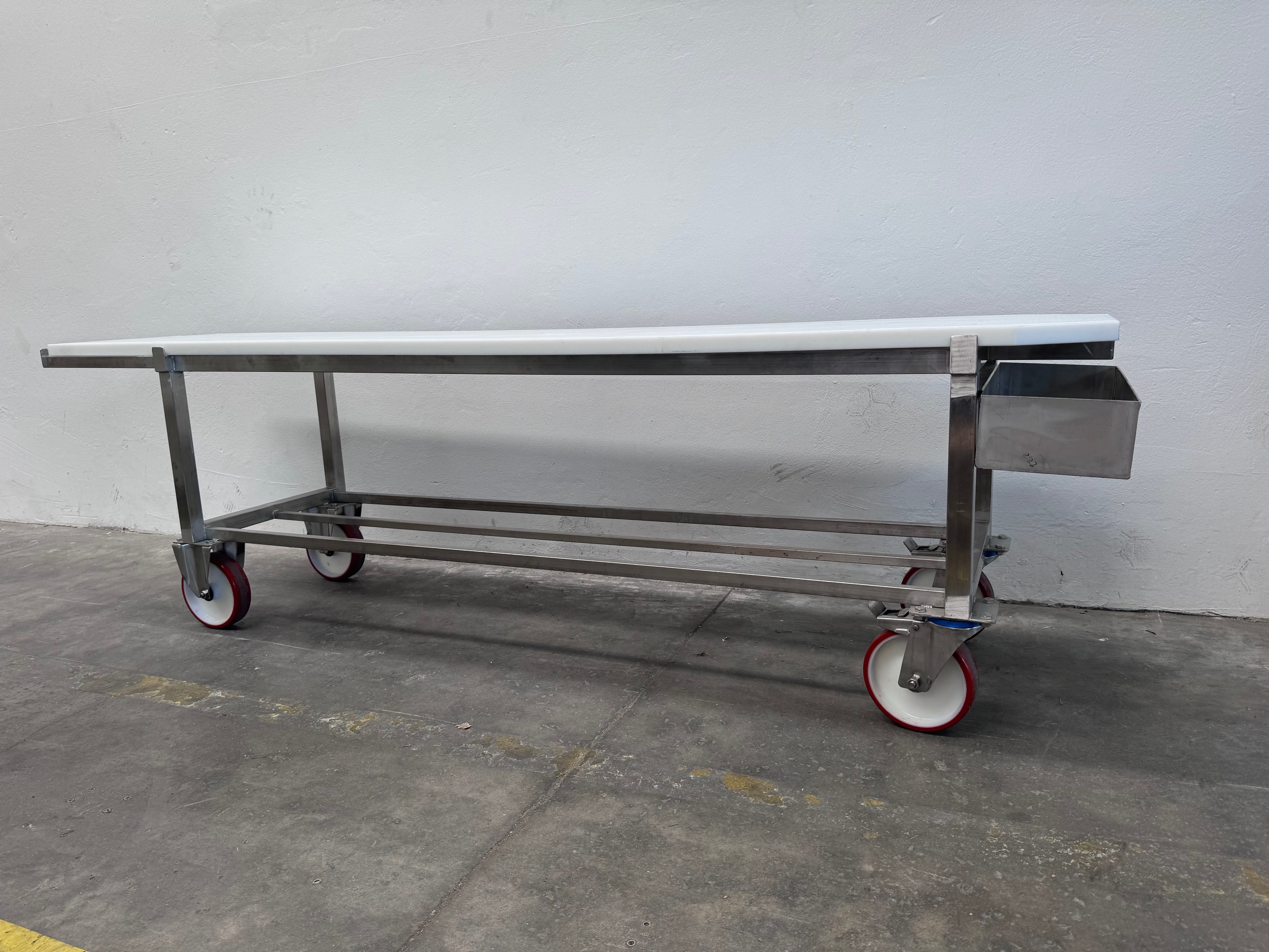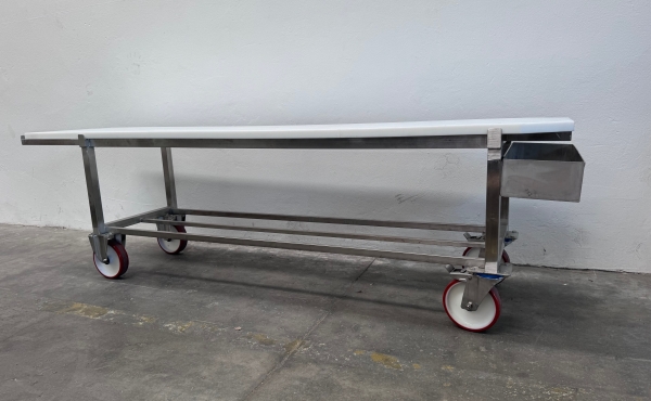 Tipo 1- REALIZZATO PER CONTENERE NR. 4 FORME DI GRANA PADANO O PARMIGIANO REGGIANO mm 2530x550x750h, struttura in acciaio inox e ripiano in polietilene per alimenti.