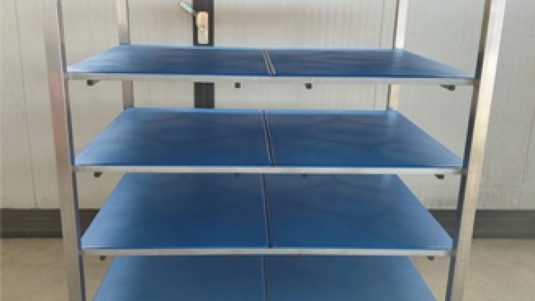 | Materiale: | struttura in acciaio inox AISI304 ripiani in ABS colore blu |