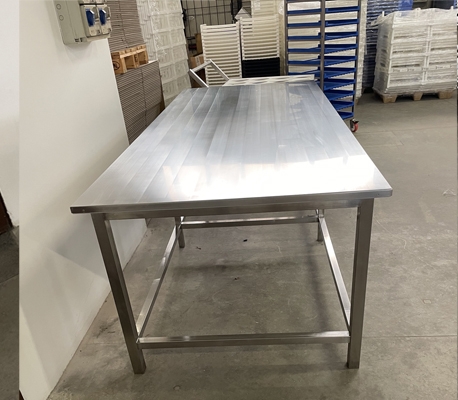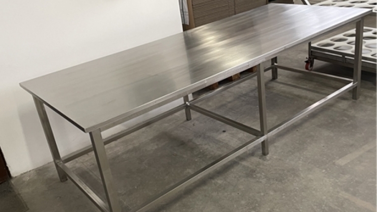 IFT propone TAVOLO IN ACIAIO INOX dimensioni mm 2900x1200x900H oppure a richiesta. La struttura e il ripiano sono realizzati standard in acciaio inox AISI304 oppure a richiesta in acciaio inox AISI316. I tavoli sono robusti, igienici e sanificabili.